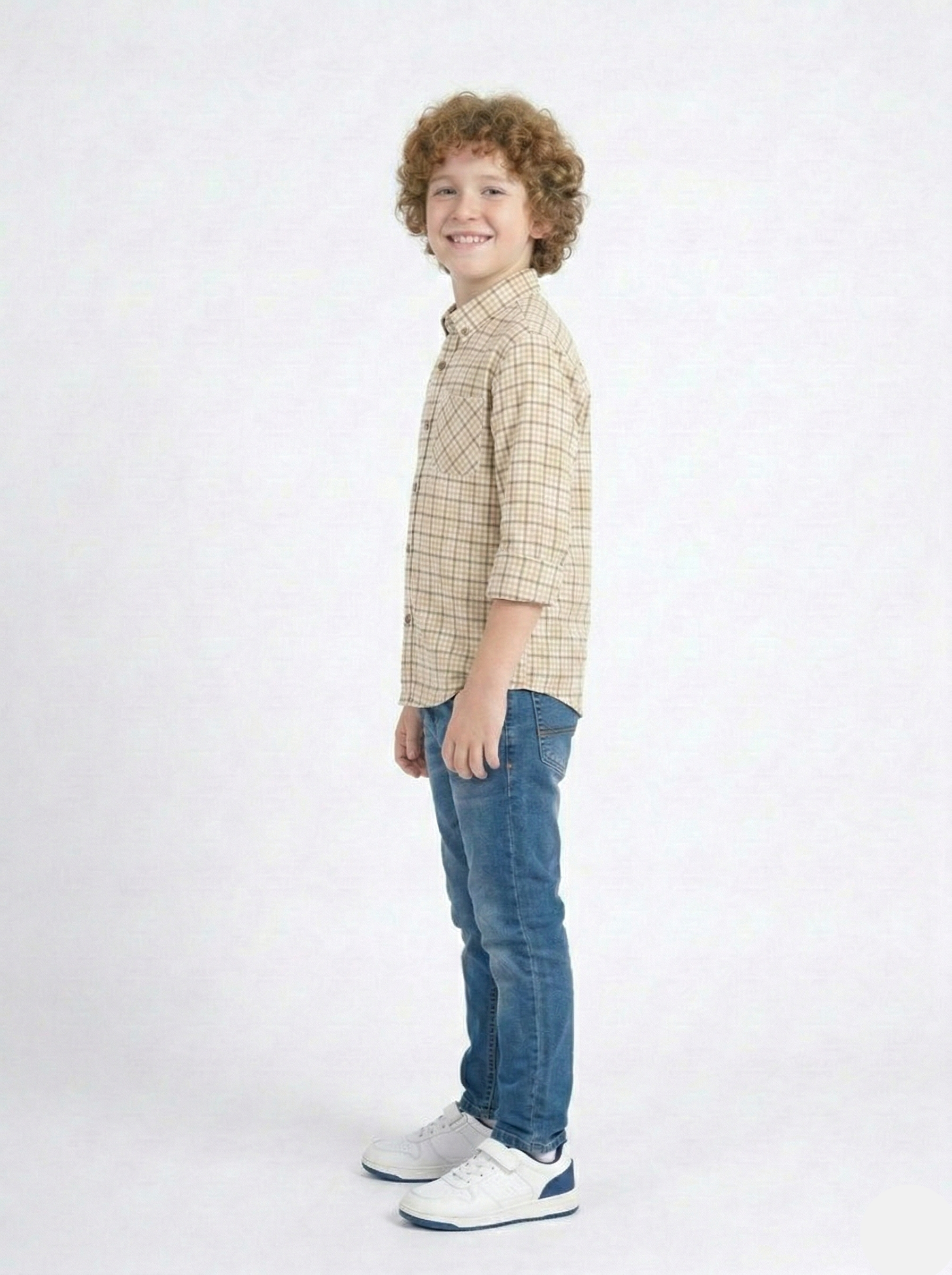 Boys Beige Checkered Casual Shirt BS-06