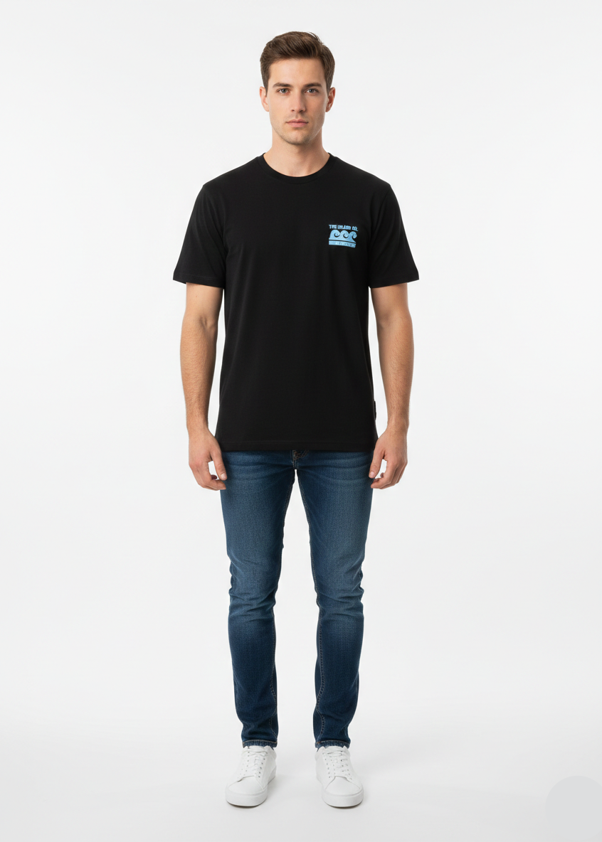 Men’s Island Theme Printed Black T-Shirt – Slim Fit MT- 21