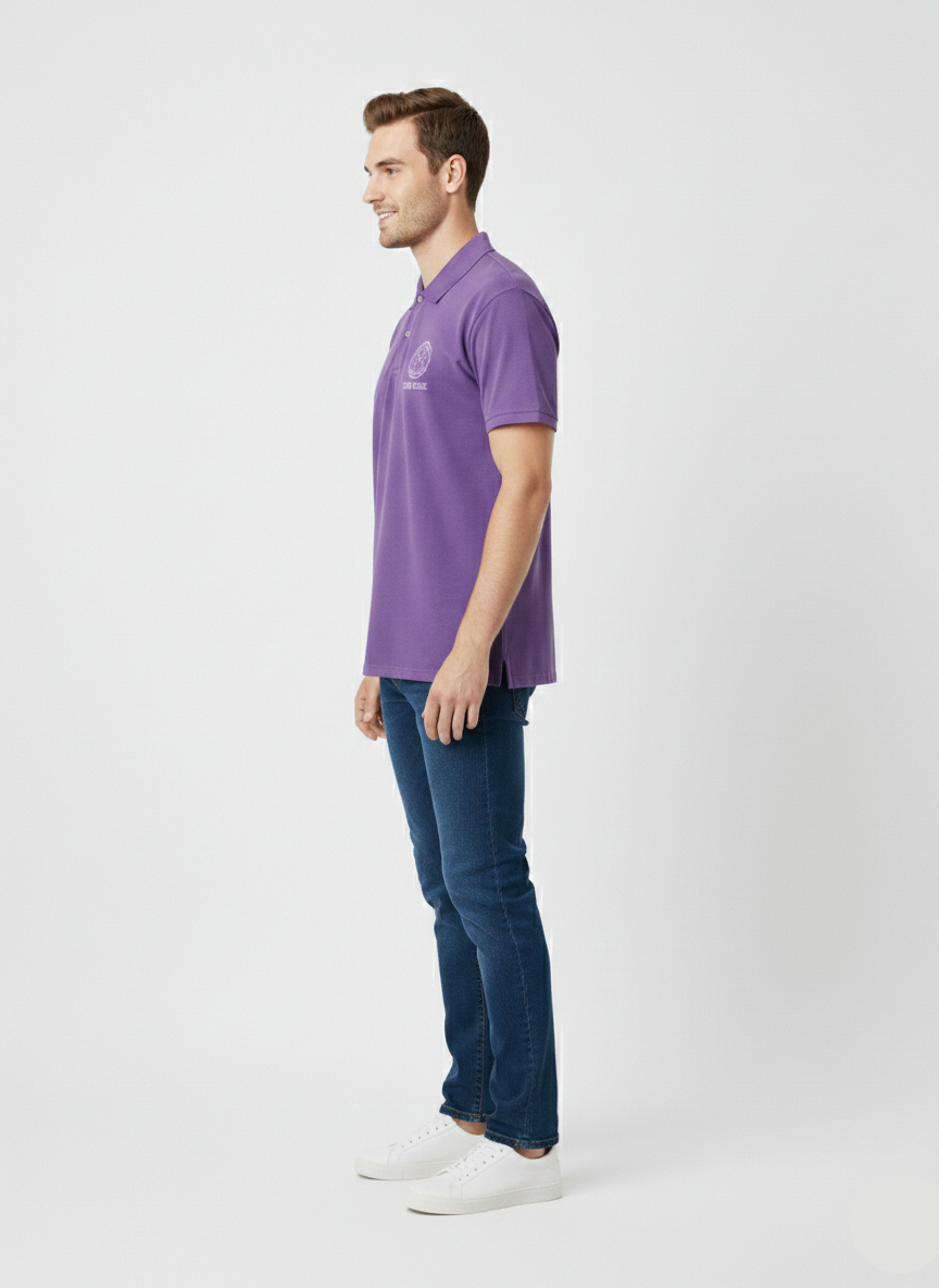 Men’s solid purple polo shirt made from soft, breathable cotton with a classic collar design. Perfect for smart casual and everyday comfort.