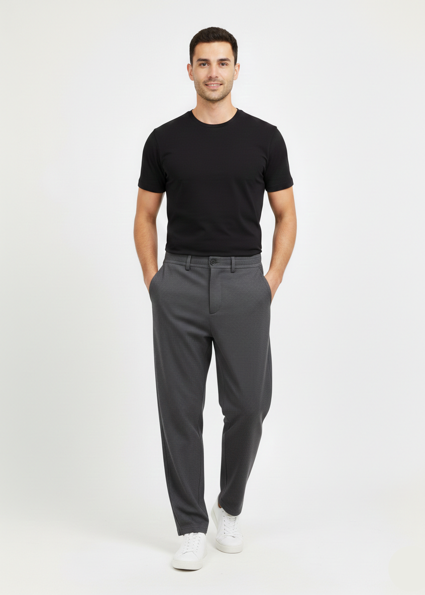 Shop men’s grey casual trousers designed with a comfortable regular fit and modern style. Perfect for office wear, smart casual outings, and everyday comfort. Soft, breathable fabric with a clean, tailored look for versatile styling.