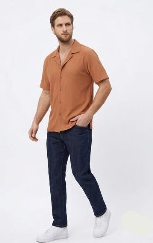 Vertical Textured Short Sleeve Cuban Collar Shirt (MS-14)